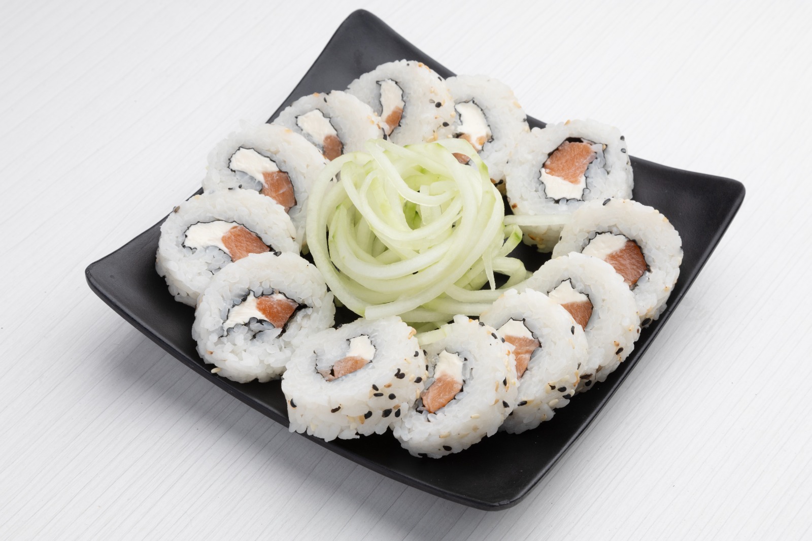 Por dentro, philadelphia y salmón. Por fuera, ajonjolí.