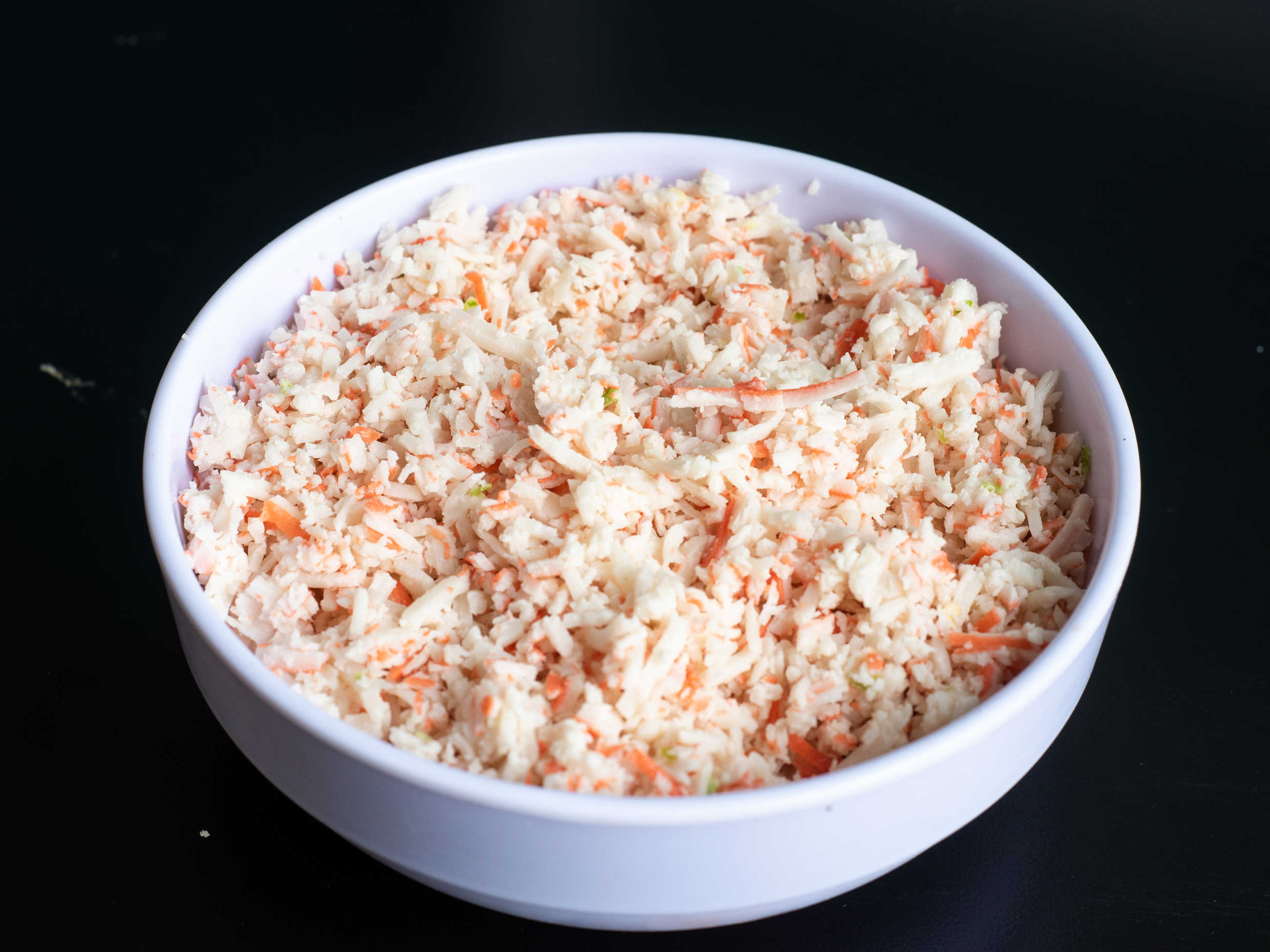 Surimi procesado, mezclado con mayonesa y chile serrano.