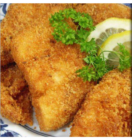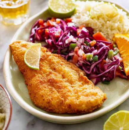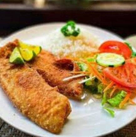 1 Pieza de pescado empanizado Acompañado de arroz, papas a la francesa y ensalada.
