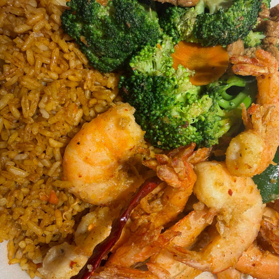 Arroz mixto con camarón, carne y pollo