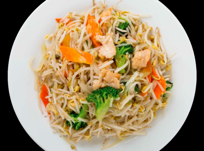 Fensi (Fideo cristalizado) trocitos de pollo, brócoli, zanahoria y champiñon