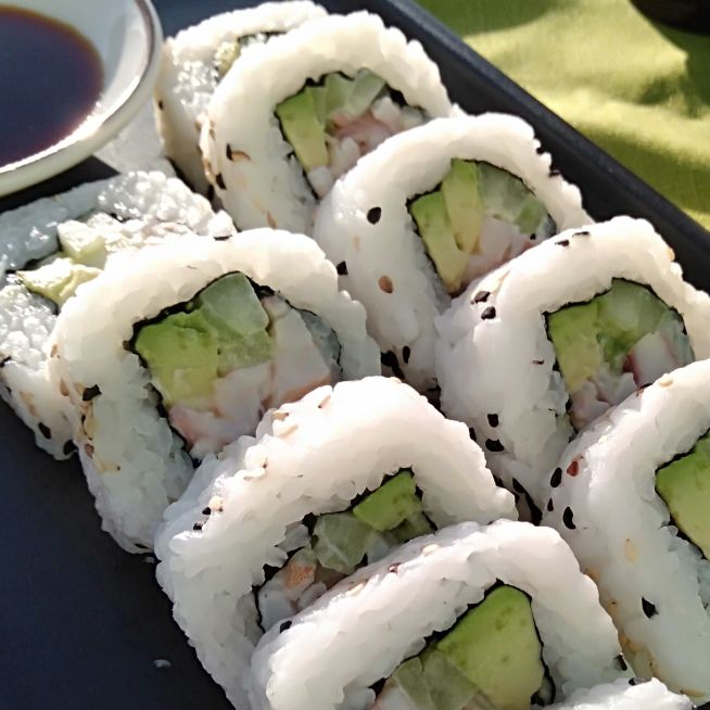 Surimi, queso crema y aguacate con alga por fuera. Incluye Palillo(Ohashi)