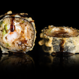 Camarón, queso crema y aguacate con alga por fuera. Incluye Palillo(Ohashi)