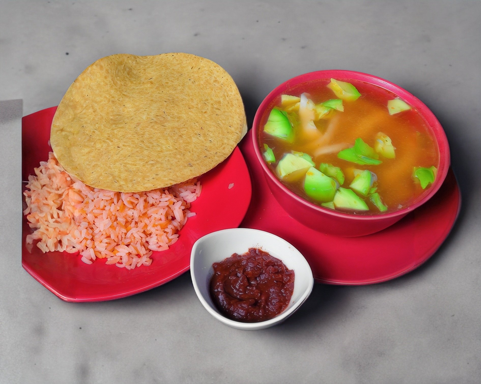 1 Refresco, más un consomé y 1 tostada especial.