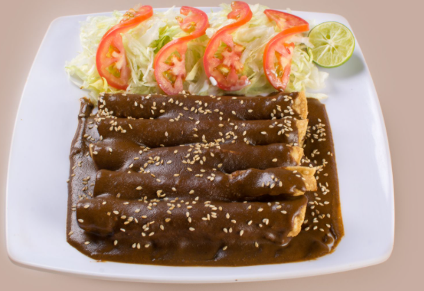 Flauta 5pz, crema, lechuga, tomate y salsa.
