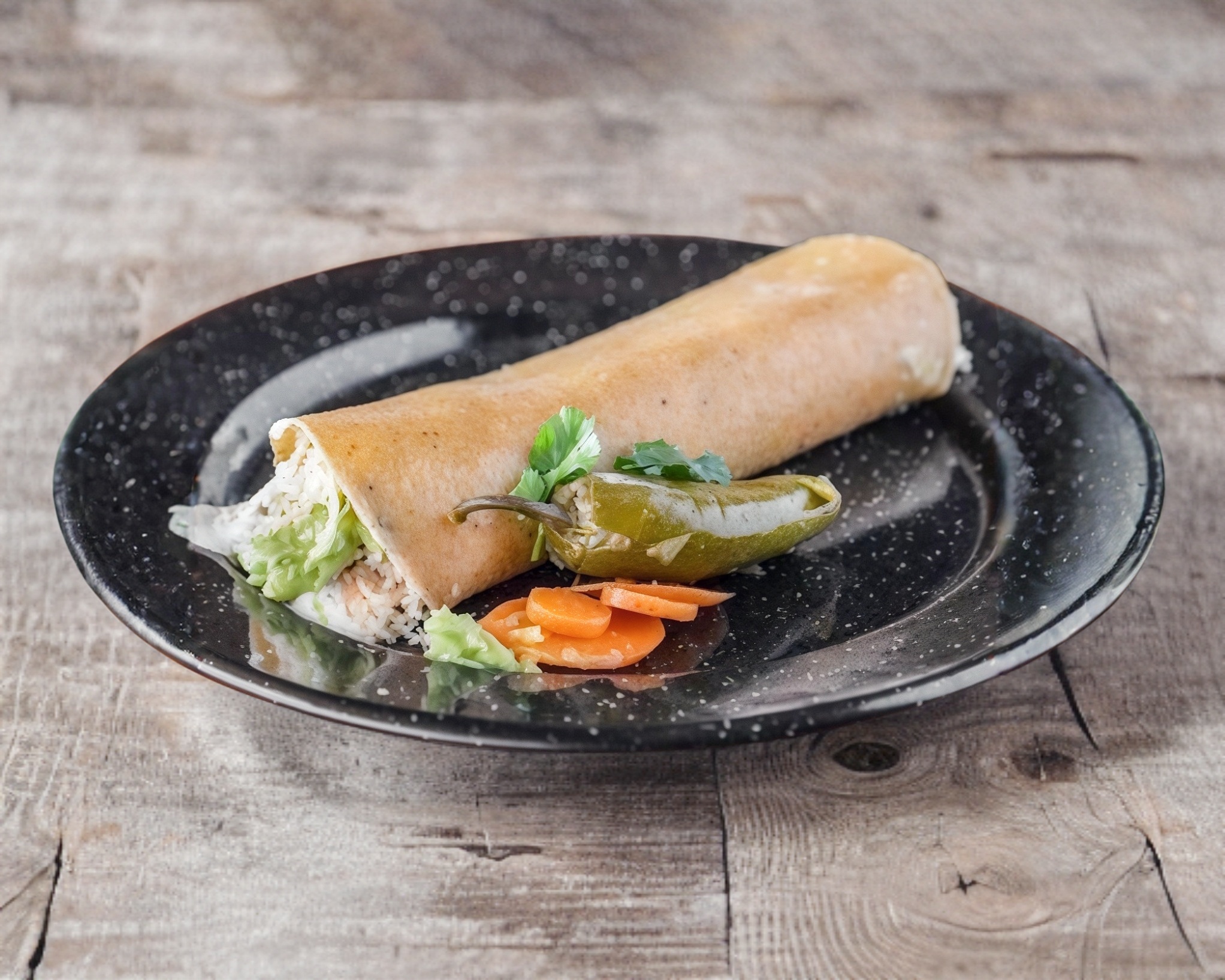 Tortilla frita, arroz.