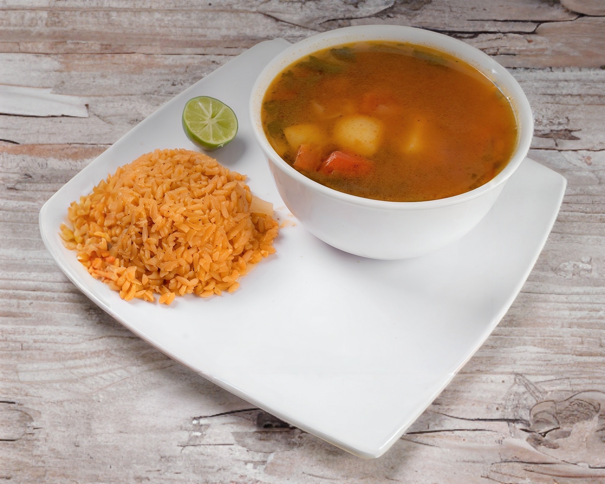 Arroz, verdura y limón.