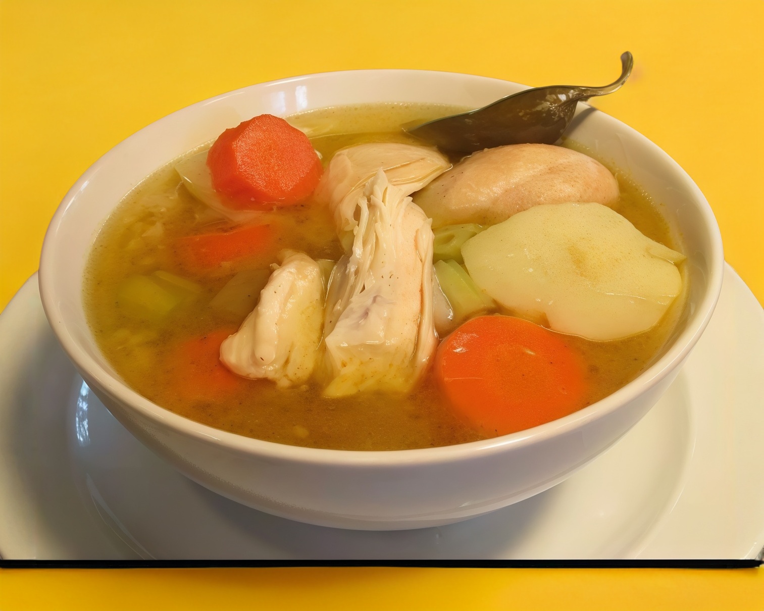 Medio Litro de caldo con Pechuga desebrada, estilo Siberia