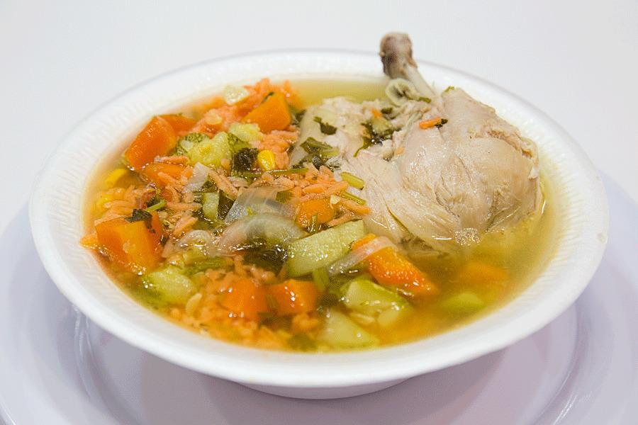 Caldo de pechuga desebrada estilo Siberia 40gr. con variedad de verduras (zanahoria, papa, calabaza, tomate, apio y cebolla), arroz, tortillas y salsa.