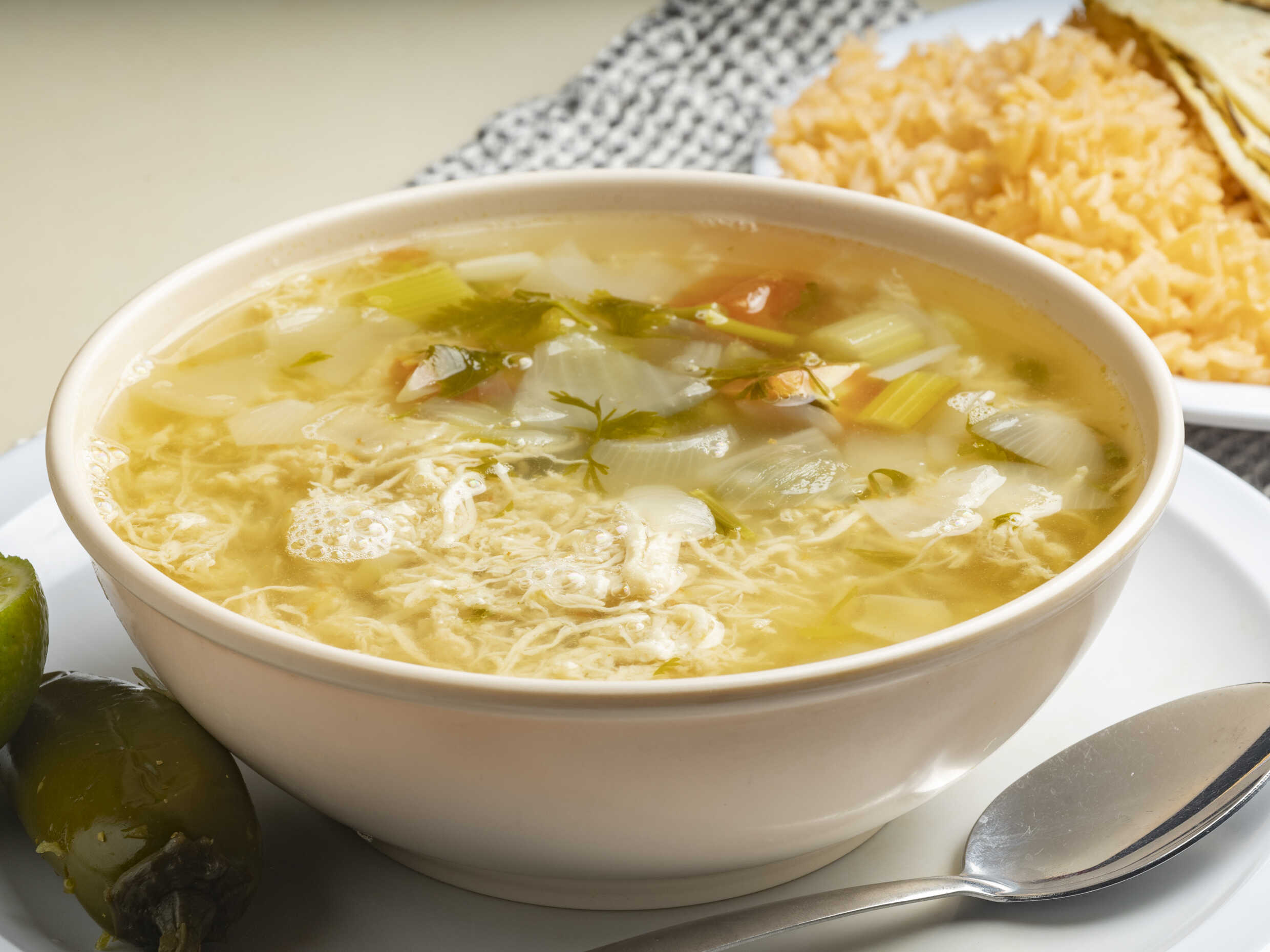1lit de caldo,pechuga desmenusada y arroz,tortilla