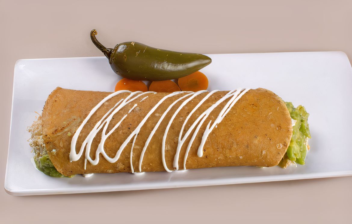 Flauta 5pz, crema, lechuga, tomate y salsa.