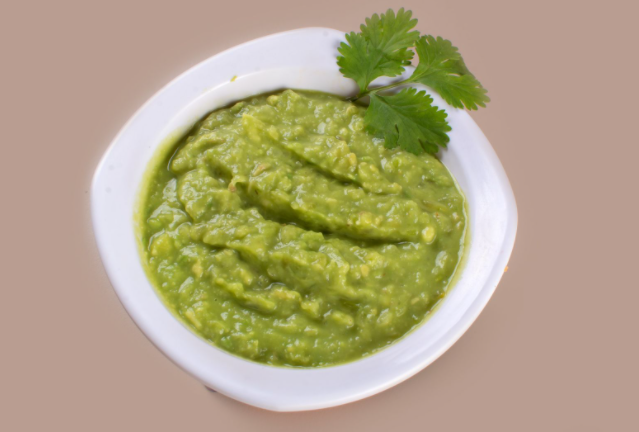 Pechuga deshebrada, guacamole, crema, tostada, tortilla gde frita, jalapeño, caldo con verdura y pechuga deshebrada.