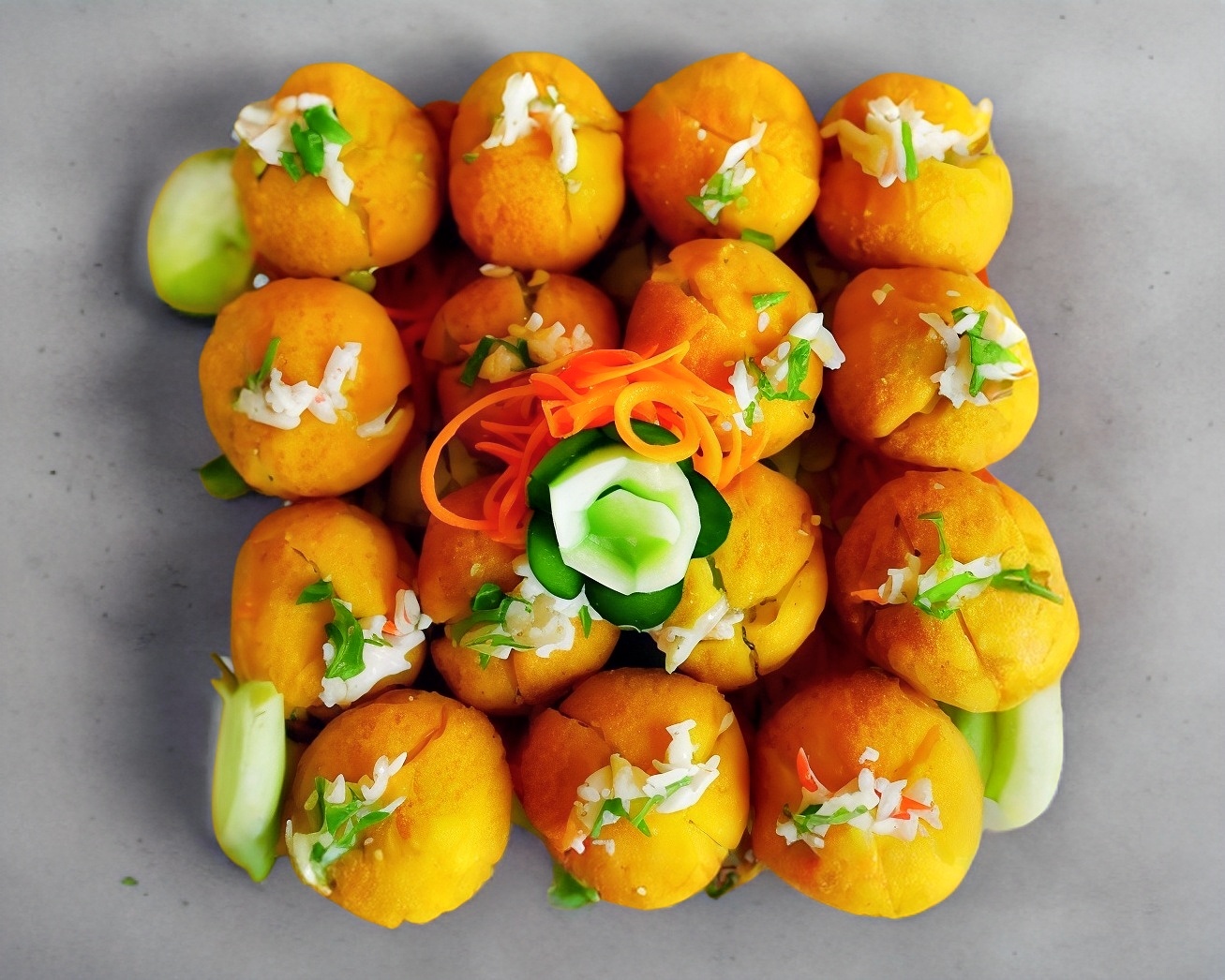 4 Bolas de Arroz Rellenas de Queso Crema, Tampico y Aguacate.