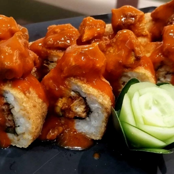 Lo mejor de dos mundos. 150g de Boneless bañados en salsa (Buffalo/BBQ) sobre una cama de Yakimeshi, acompañados de medio sushi bite roll california (frío) o empanizado a tu elección de Camarón | Res | Pollo | Tampico | Cangrejo | Trompo | Pescado y una brocheta de Queso Manchego.
