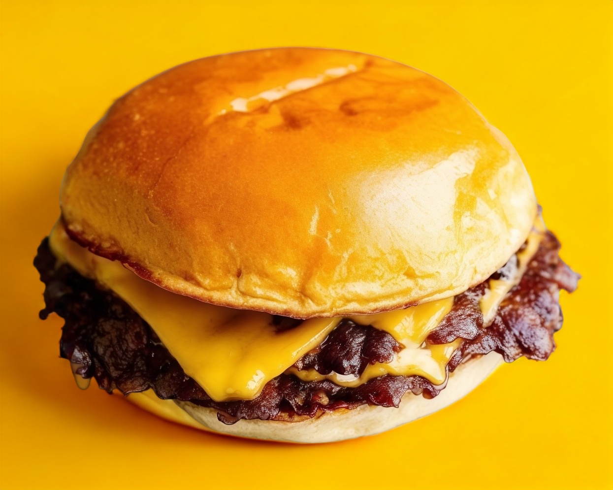 Pan brioche, aderezo especial, carne, queso américano, lechuga, tomate, cebolla.