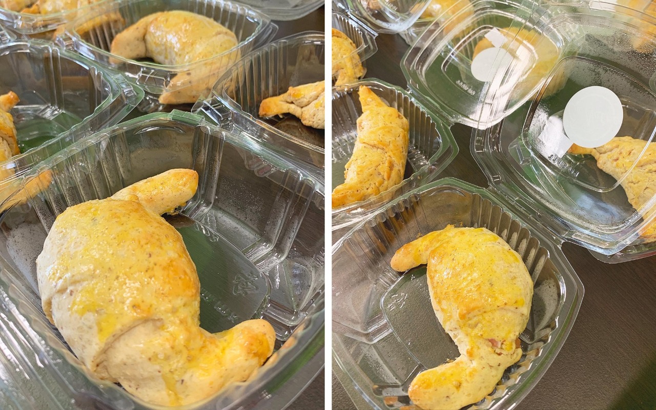 25 gr 1 pieza. Mantequilla, splenda, sal, proteína Ce Nutre, saborizante naranja y harina de coco.