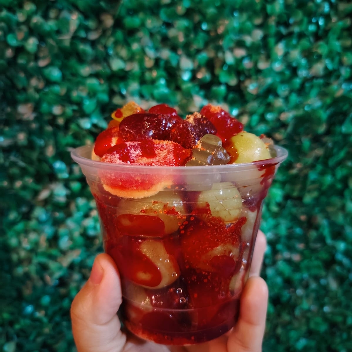 Uvas bañadas con tamarindo y gomitas