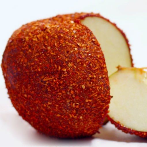 Manzana cubierta de tamarindo rellena de golos , panditas, manguitos , gajos enchilados , aros de manzana y vivoritas