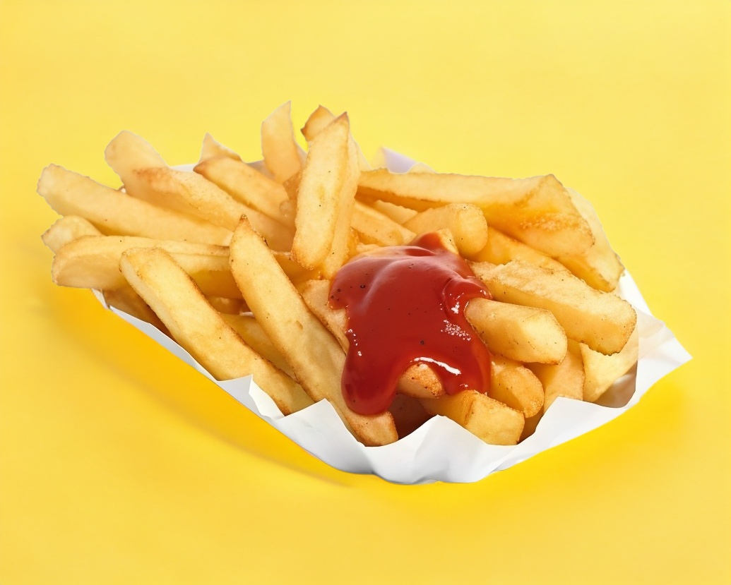 Papas fritas (lisa regular) sencillas o preparadas con salsa cátsup