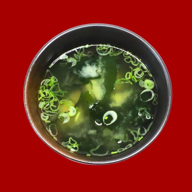 CALDO MISO CON NEGGI(CEBOLLA), HOJA WAKAMEN (HOJA VERDE O ALGA DESHIDRATADA)