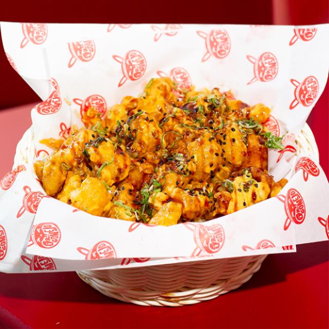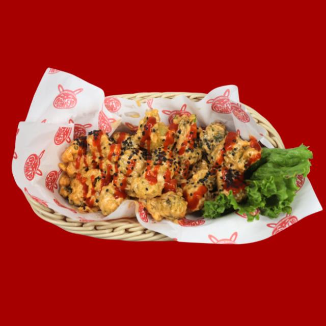 150 gr de coliflor a la tempura bañada en salsa spicy, ajonjolí negro y sriracha.