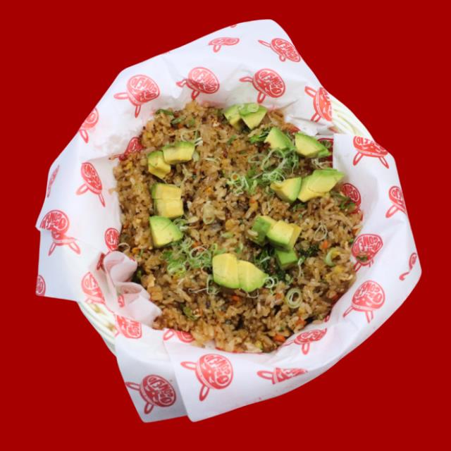 Arroz frito con verduras del dia y aguacate.