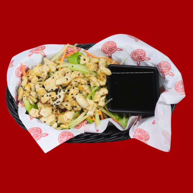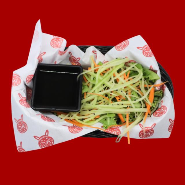 Lechuga pollo a la plancha, zanahoria, pepino con un toque de vinagre de la casa y mix de ajonjolí