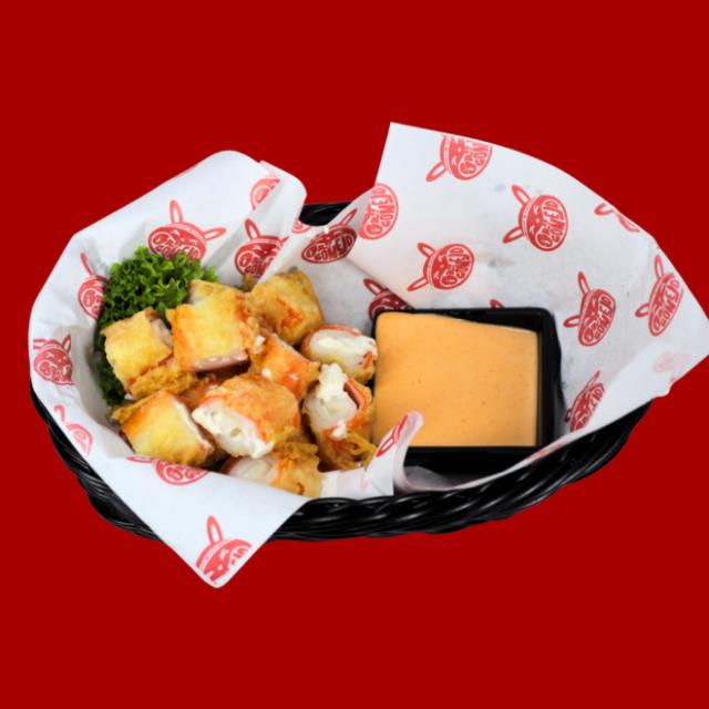 Surimi al tempura relleno de queso crema , porcion personal .