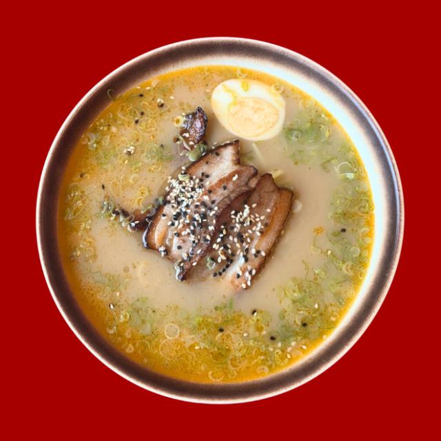 PASTA RAMEN CON CERDO, HUEVO, NEGGI(CEBOLLA CAMBRAY), SOYA, ACEITE DE AJONJOLI PICANTE