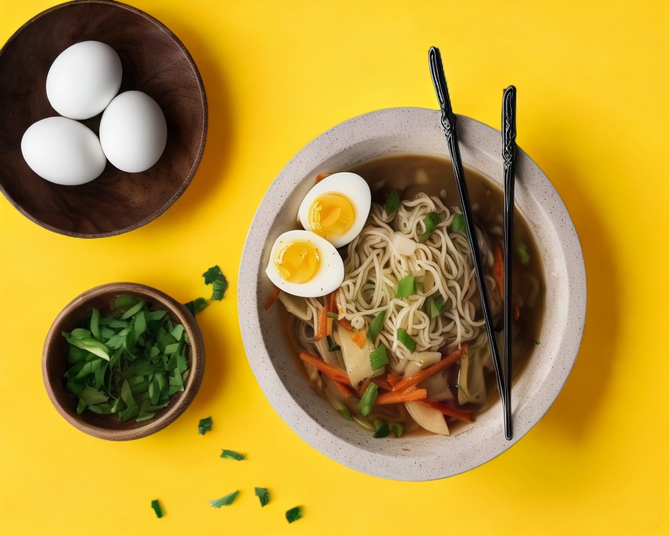 Sopa con pasta ramen verduras zanahorias, calabaza, champiñones, huevo, mas la proteína que elija.