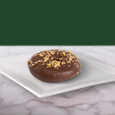 Disfruta una dona de chocolate con topping de nuez y un Latte caliente a un precio especial.
