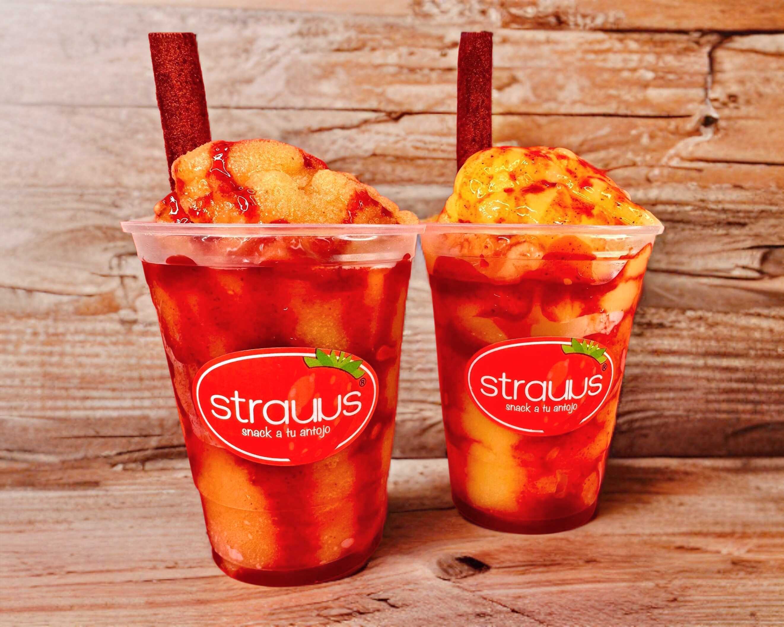 16 oz. Mezcla de smoothie de fruta 100% natural. Incluye chamoy y lancita de tamarindo.