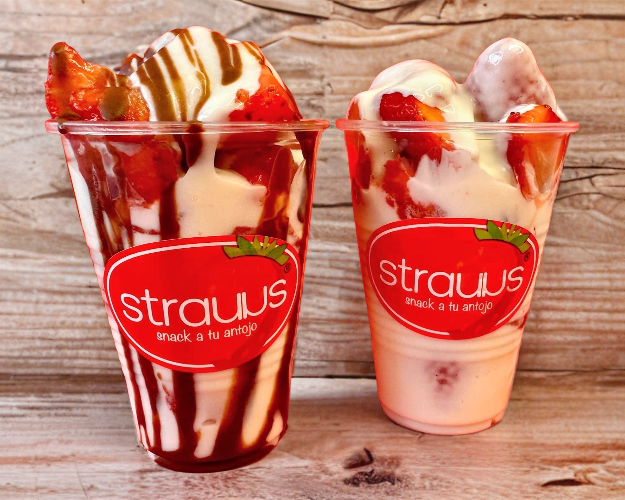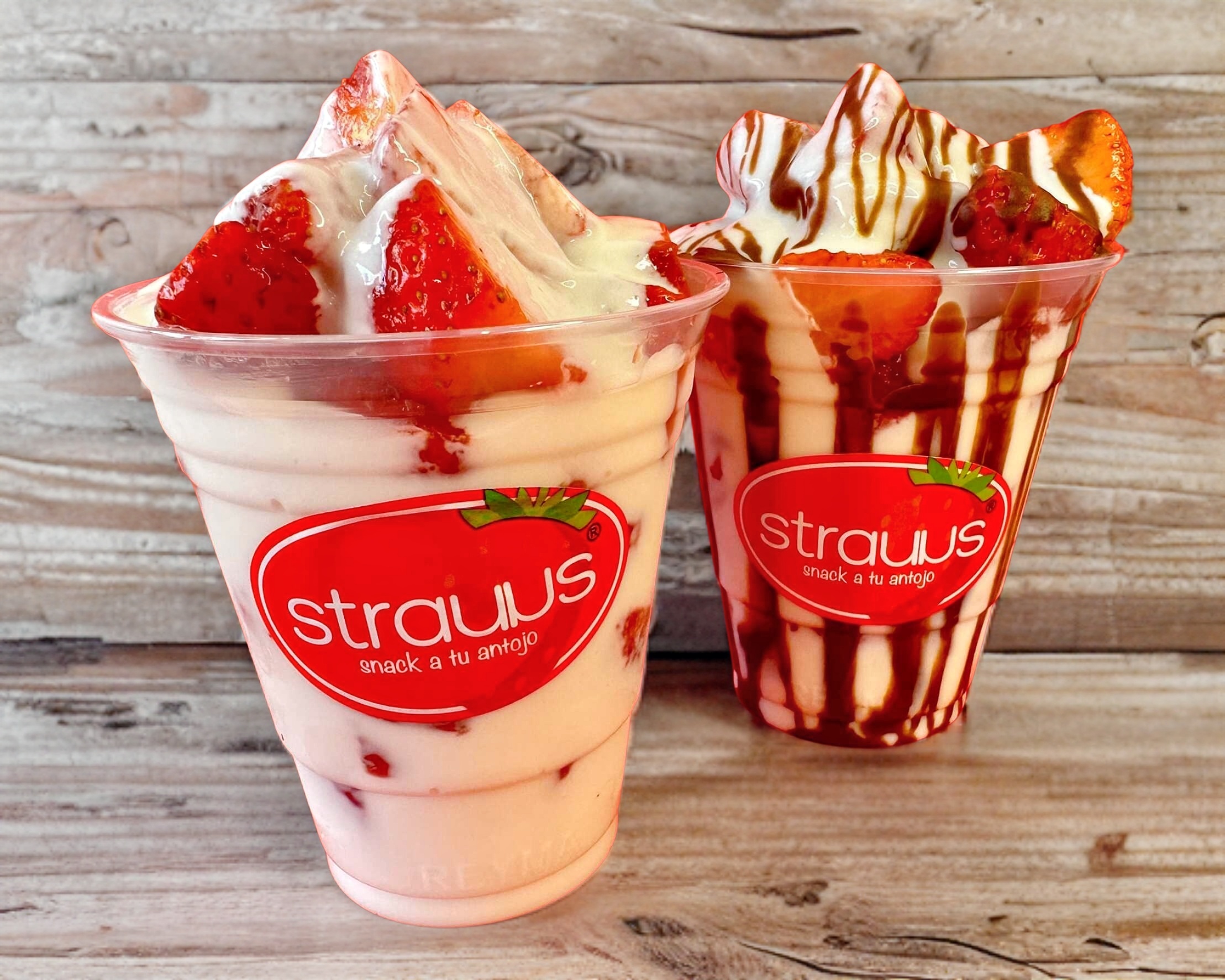 8oz. Fresas naturales bañadas en crema dulce strauus.
