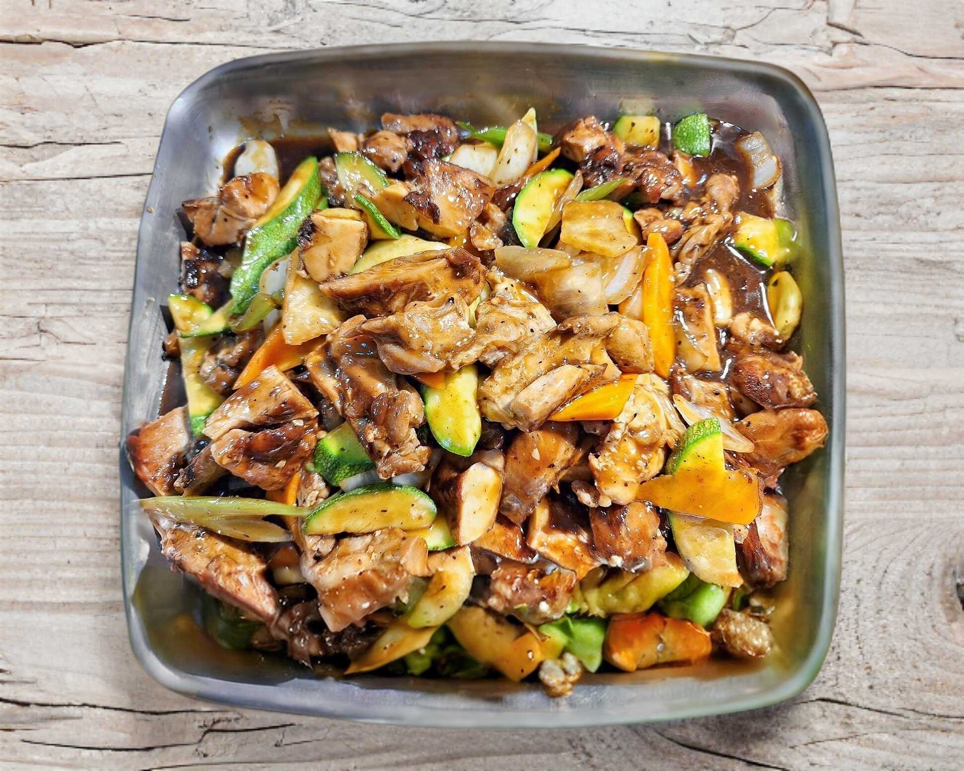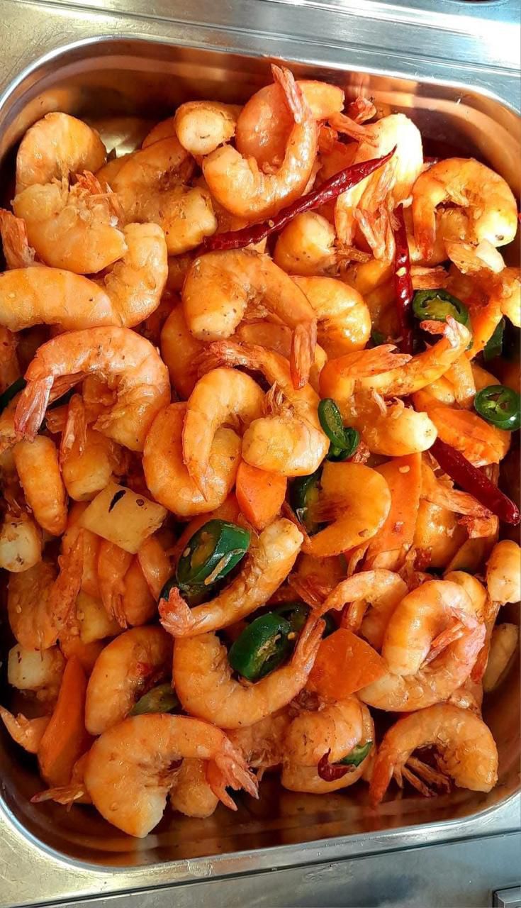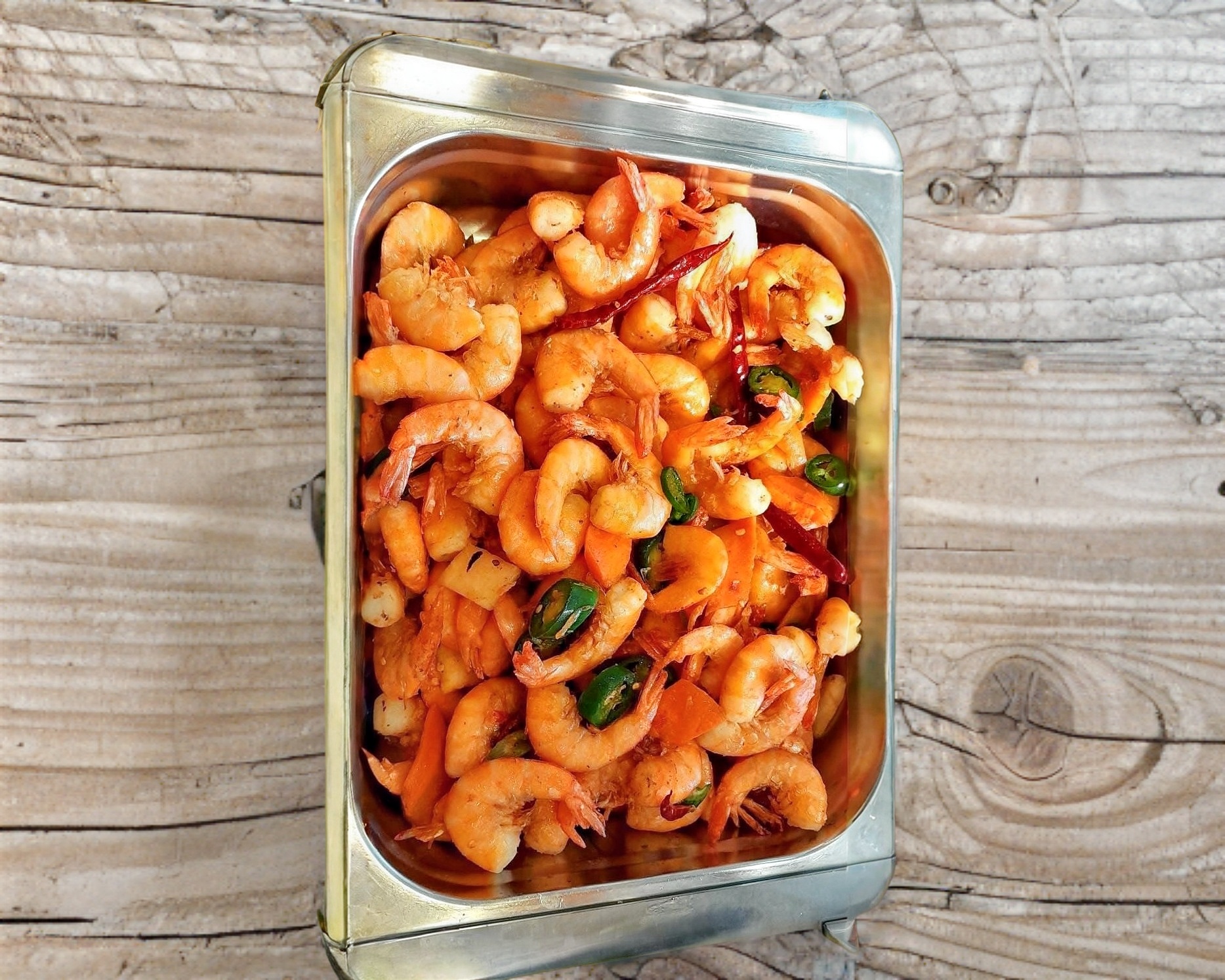 Arroz con 3 guisos a elección y camarón. (Para máx. 3 personas)