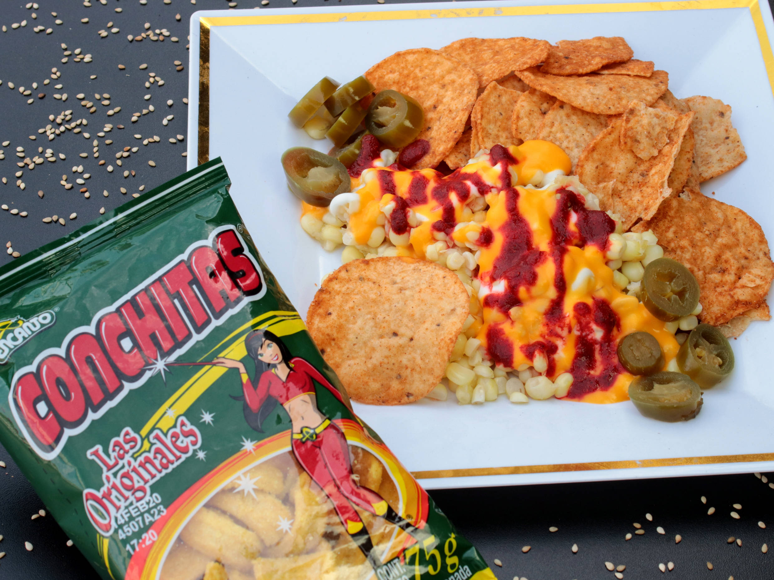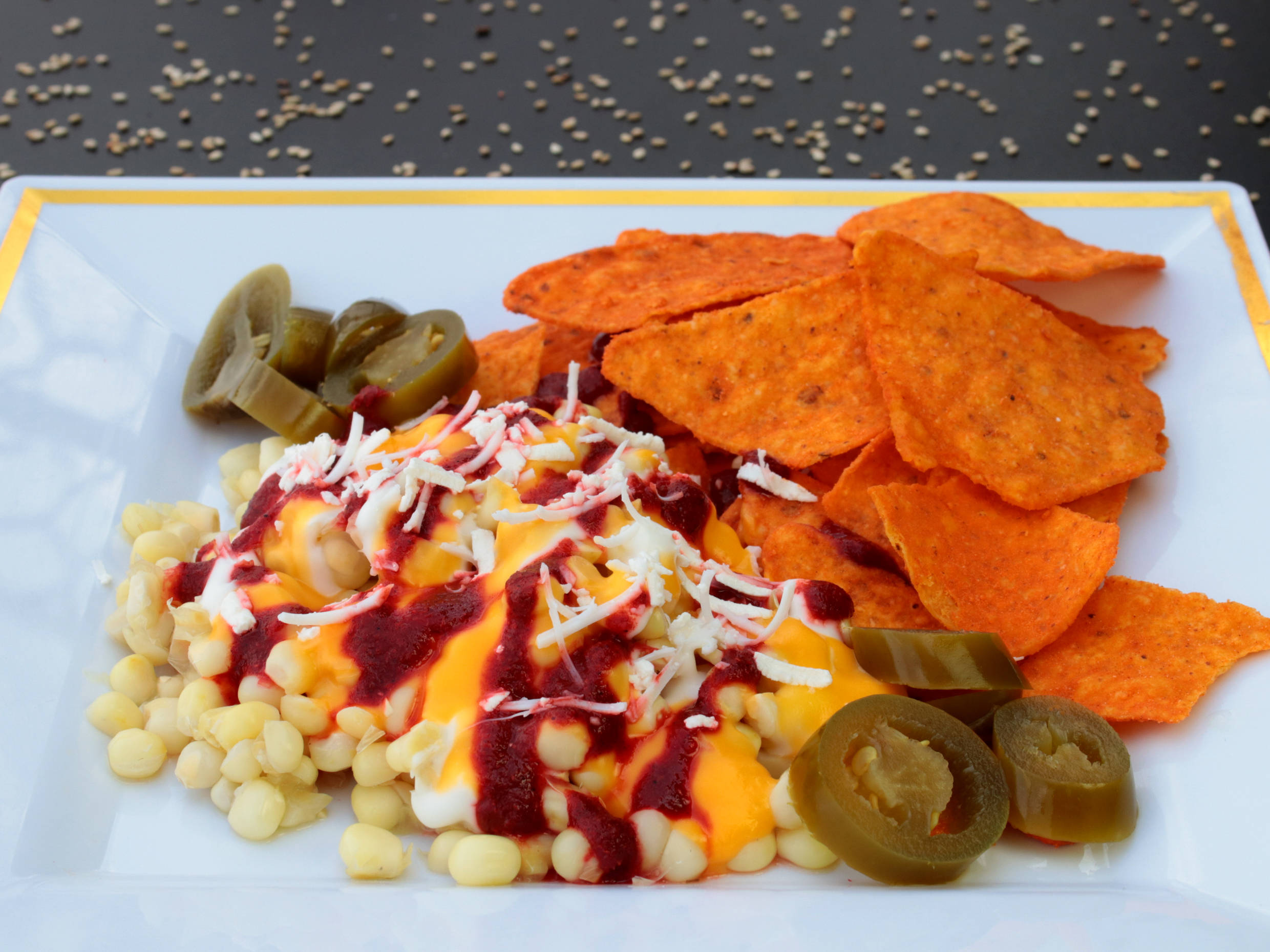 Platillo con botana más elote complementado con los toppings y aderezos de tu elección.