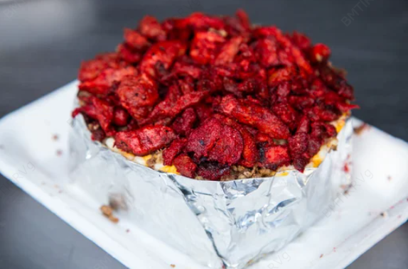 Papa, queso amarillo, crema, mantequilla, queso asadero, trompo y carne.