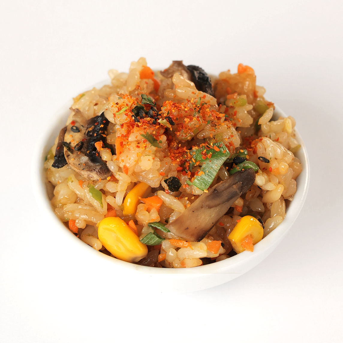 Arroz frito a la plancha con ingrediente a elegir, con verduras, elote, cebollin y champiñon guisado con chile de arbol