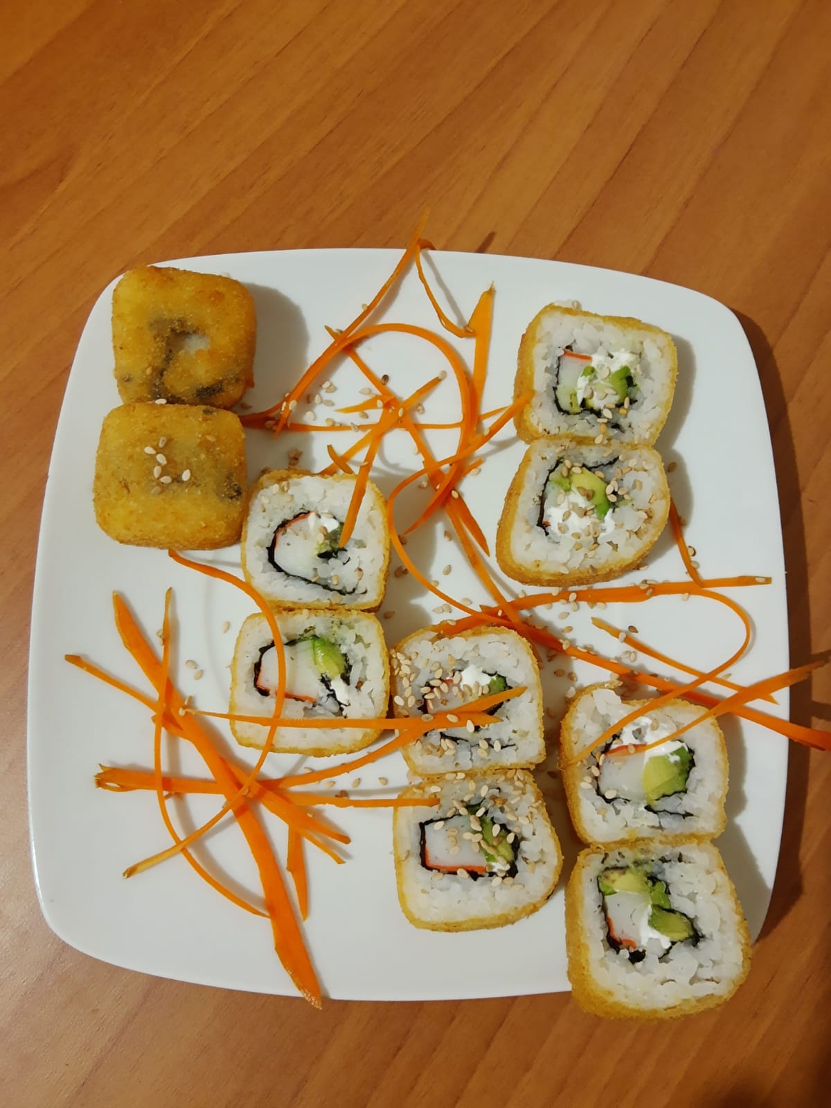 Echo con arroz frito camaron tempura queso aguacate y tampico un lado