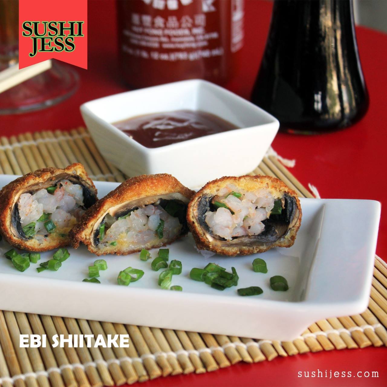 6 Camarones rellenos de queso Philadelphia empanados con aderezo de chipotle.