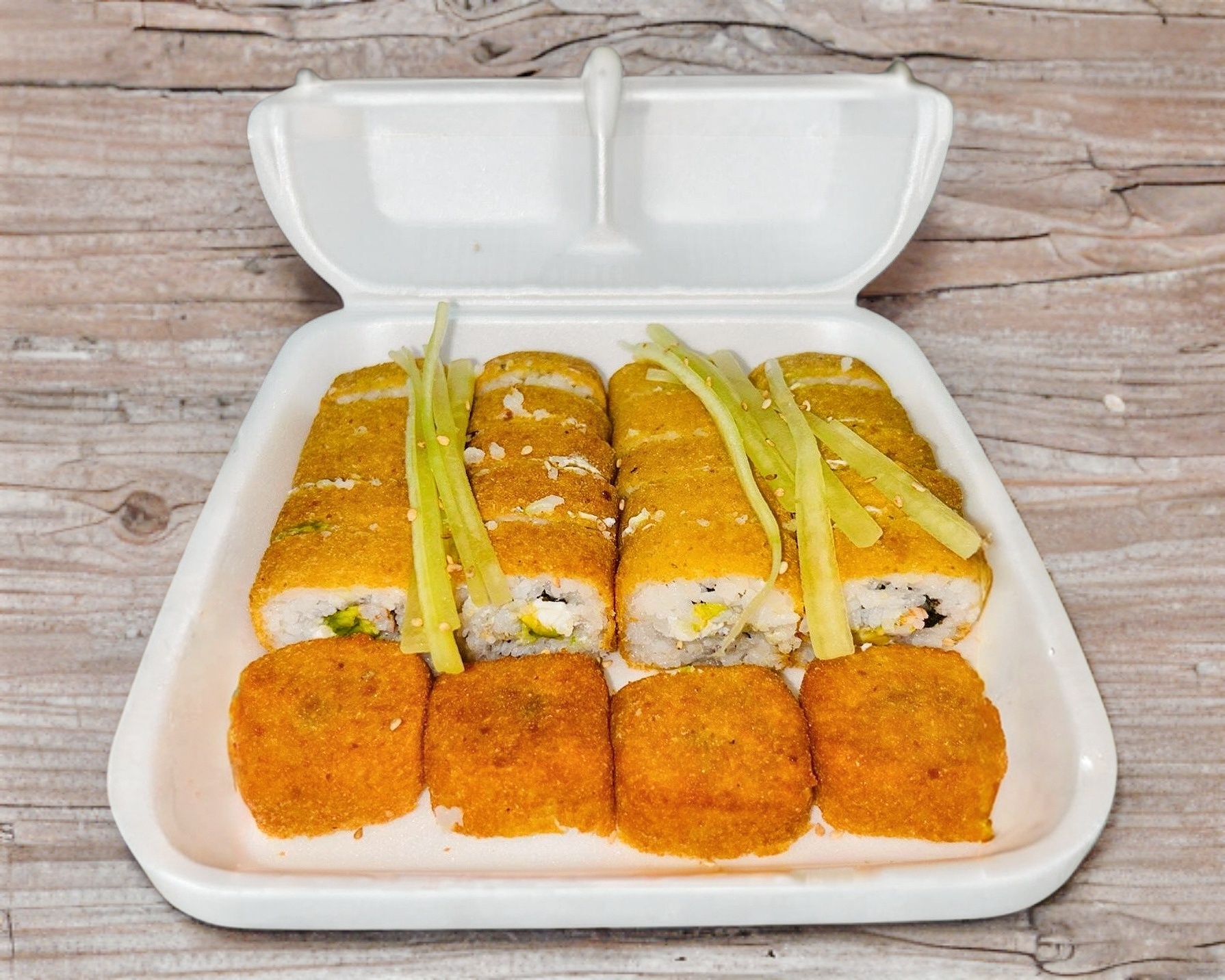 2 sushis empanizados a elegir ( de 12 bocados cada rollo)