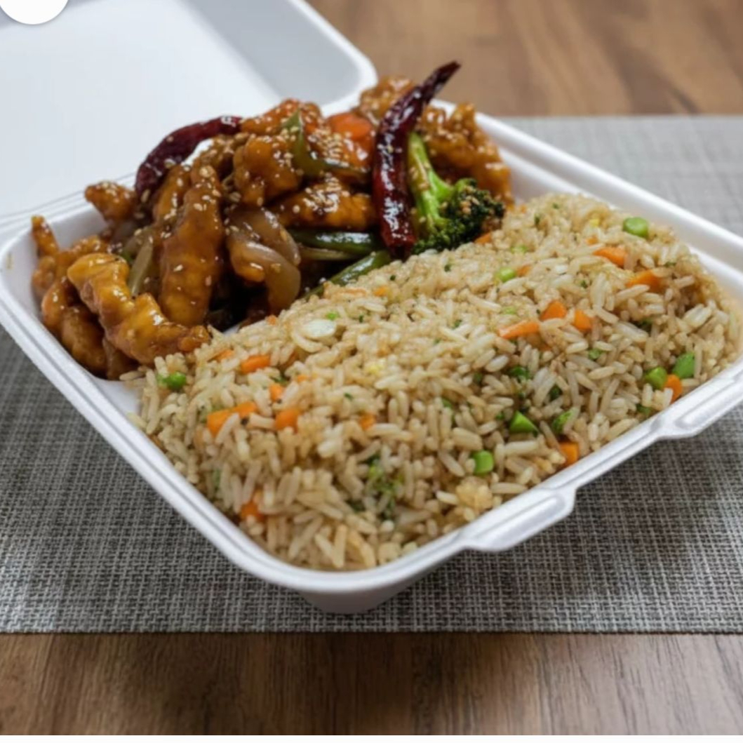 1/2 de arroz chino + un guiso de pollo cepeado a elegir