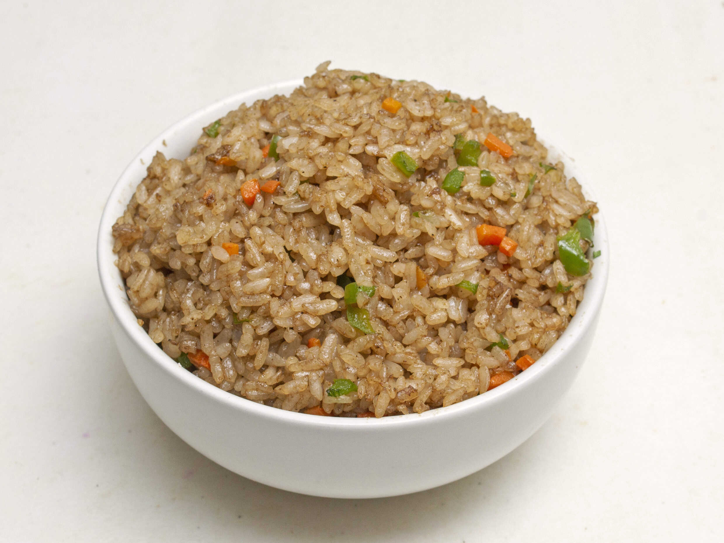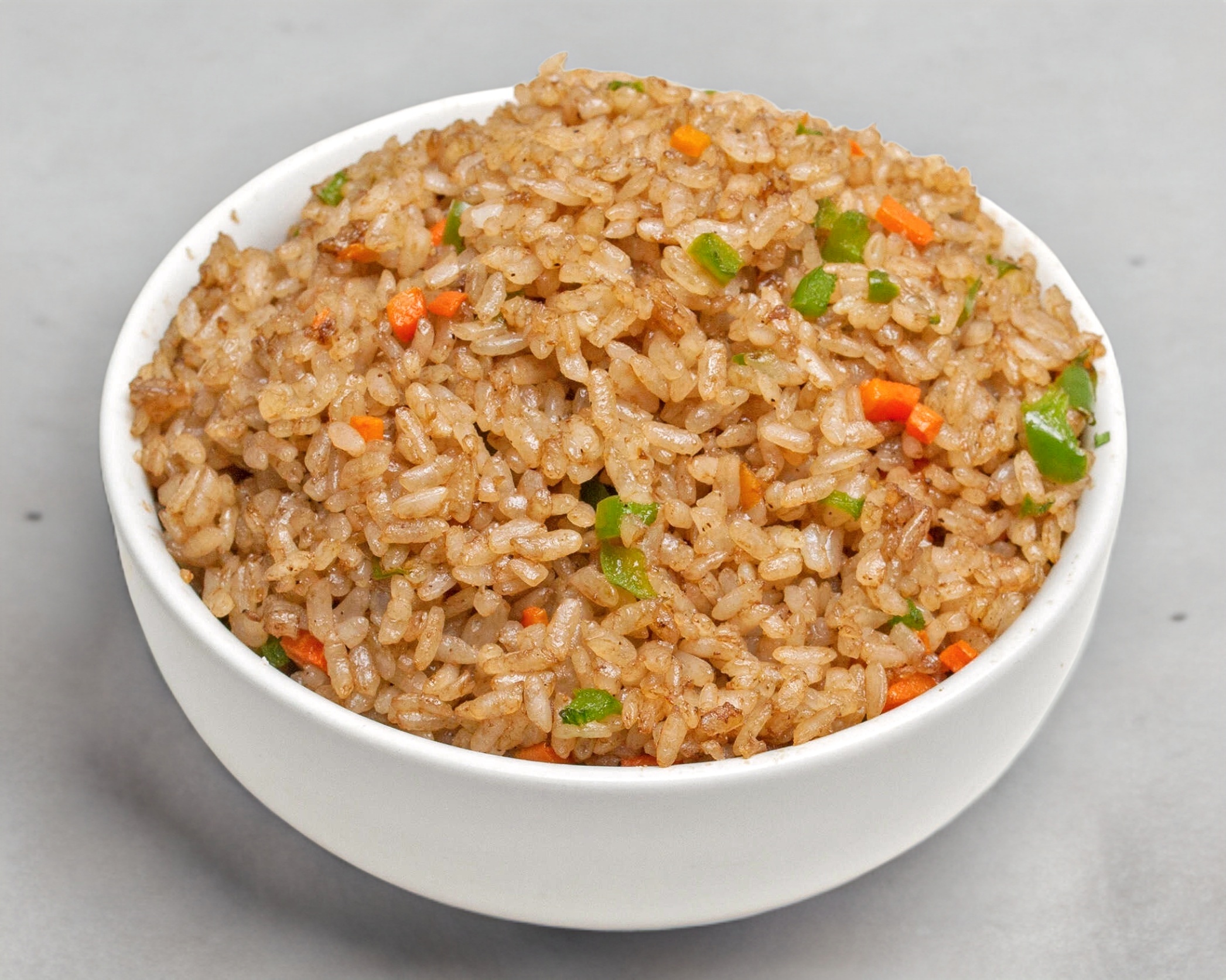 Arroz frito con verduras y trozos de pollo