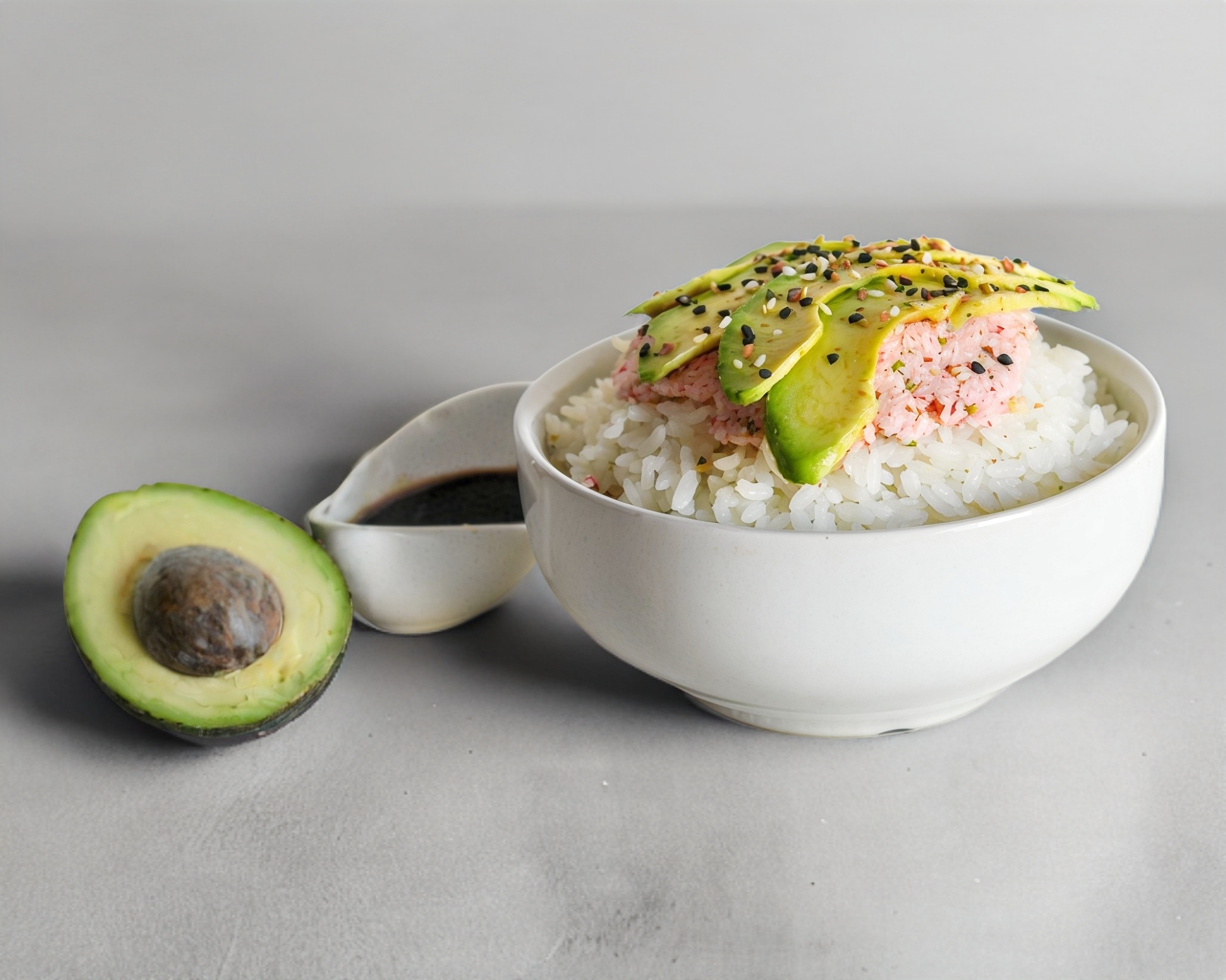 Arroz al vapor con pasta Tampico y aguacate.