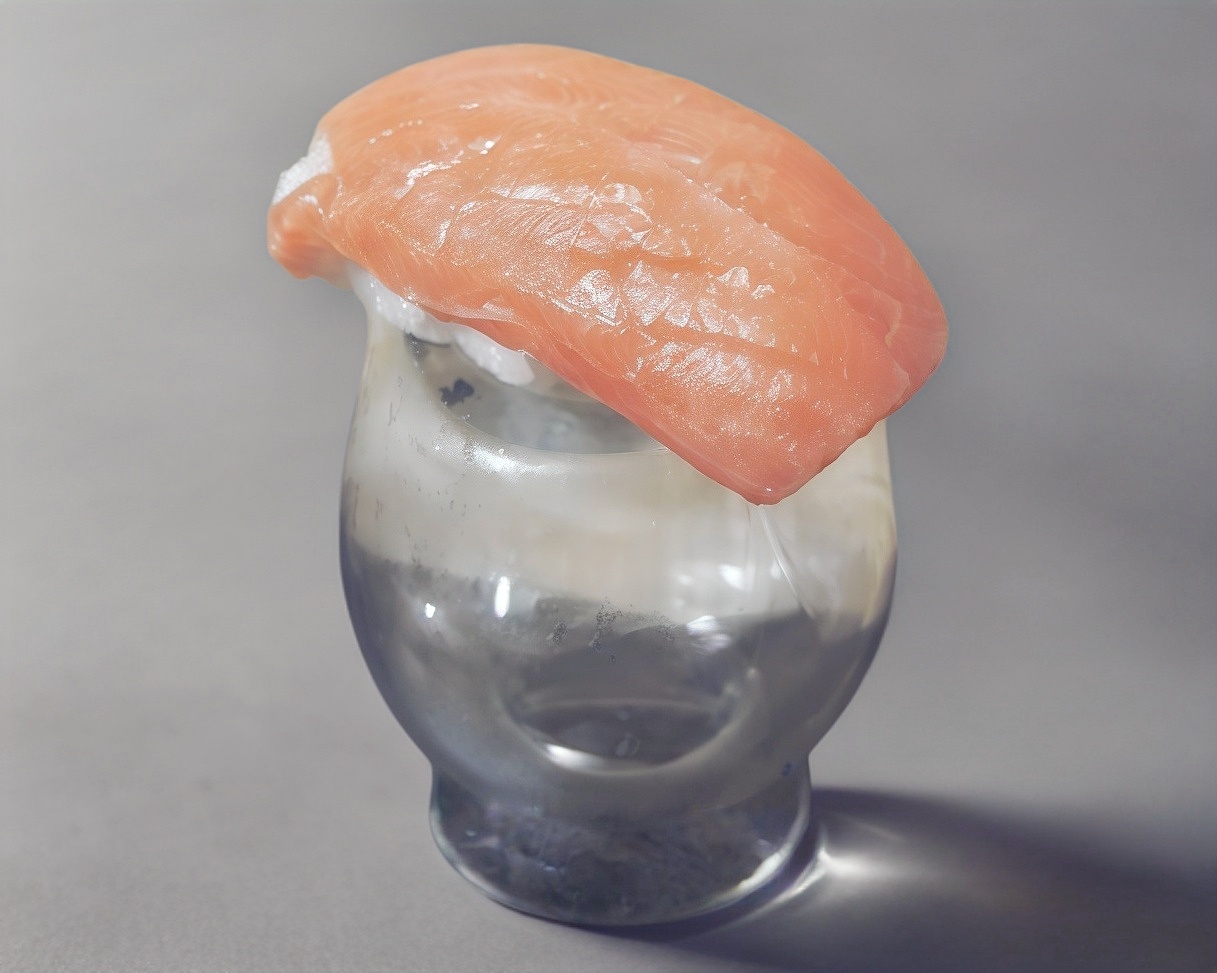Pequeña porción de arroz cubierta de salmón