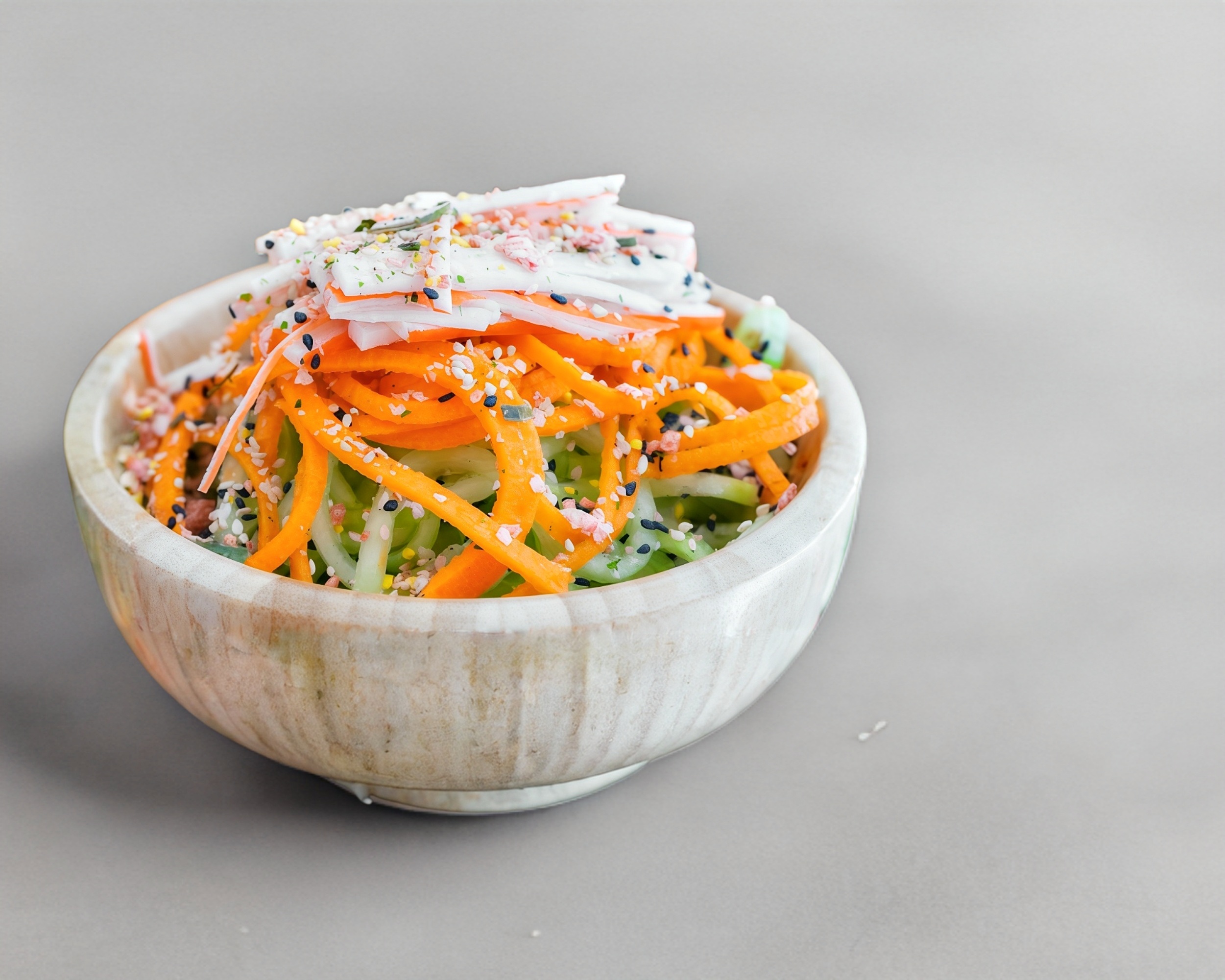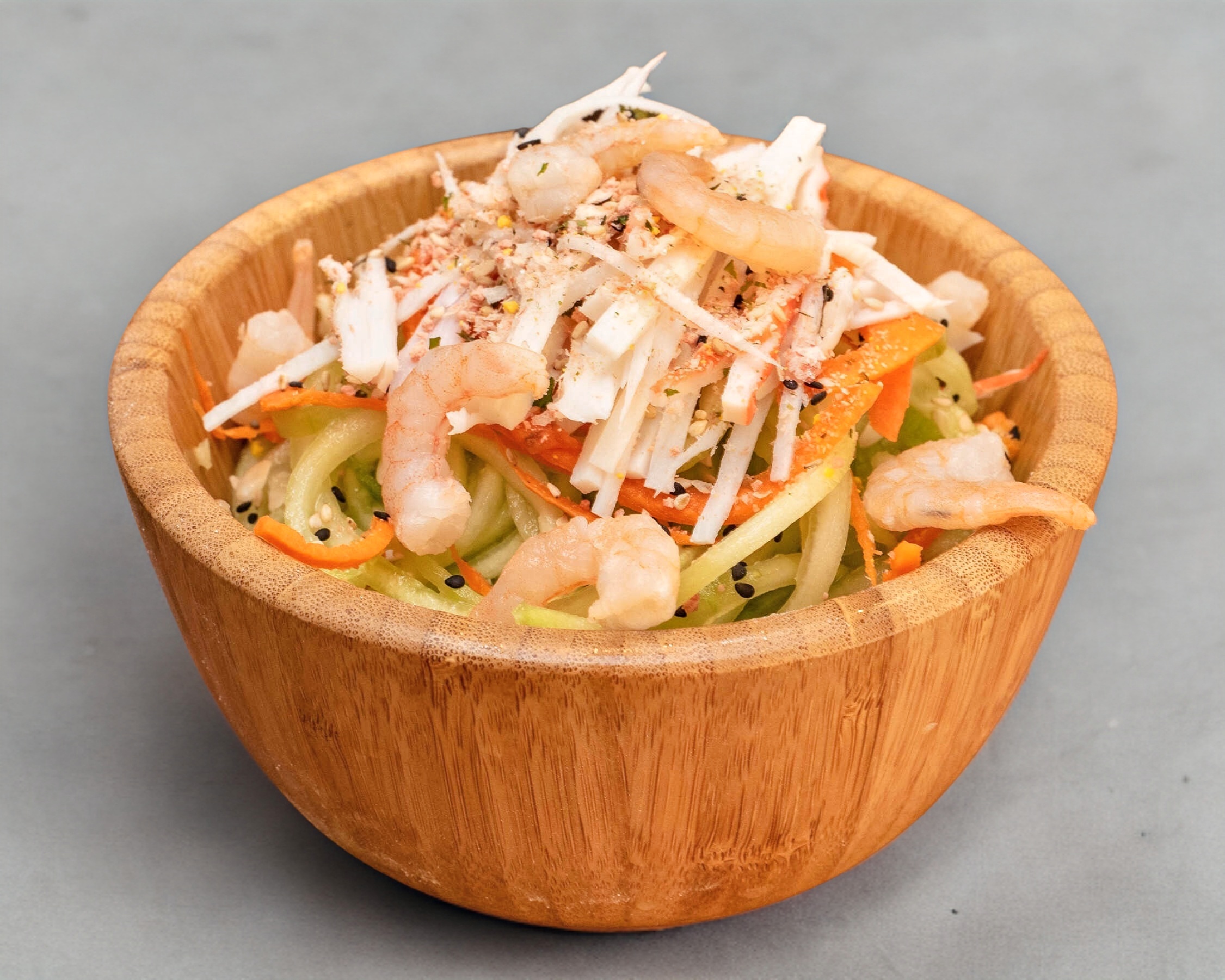 Rollo frío con zanahoria, pepino, aguacate, philadelphia. Acompañado de salsa de soya y aderezo chipotle.