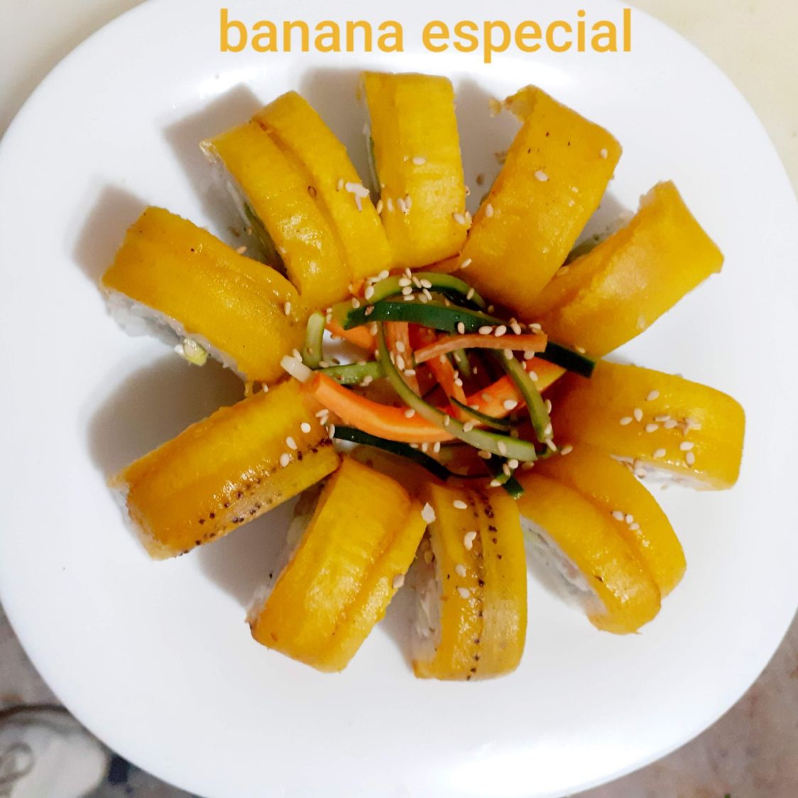 Surimi, aguacate, queso por dentro, surimi por fuera y tampico a un lado.