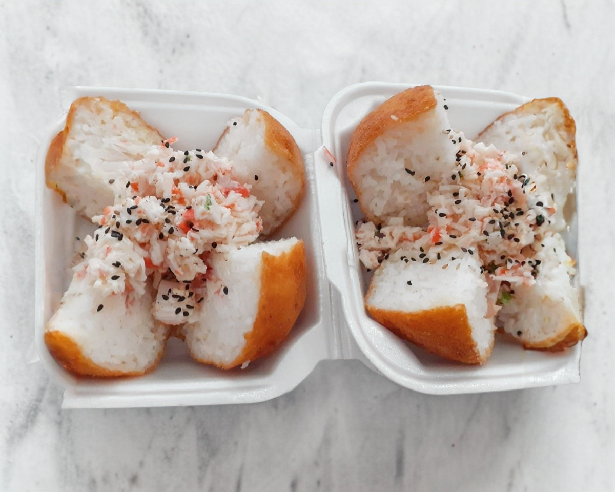 Bola de arroz empanizada rellena de queso y 1 ingrediente. (con pasta tampico)