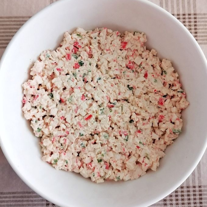 surimi, Aguacate y queso. Con surimi por fuera y tampico arriba