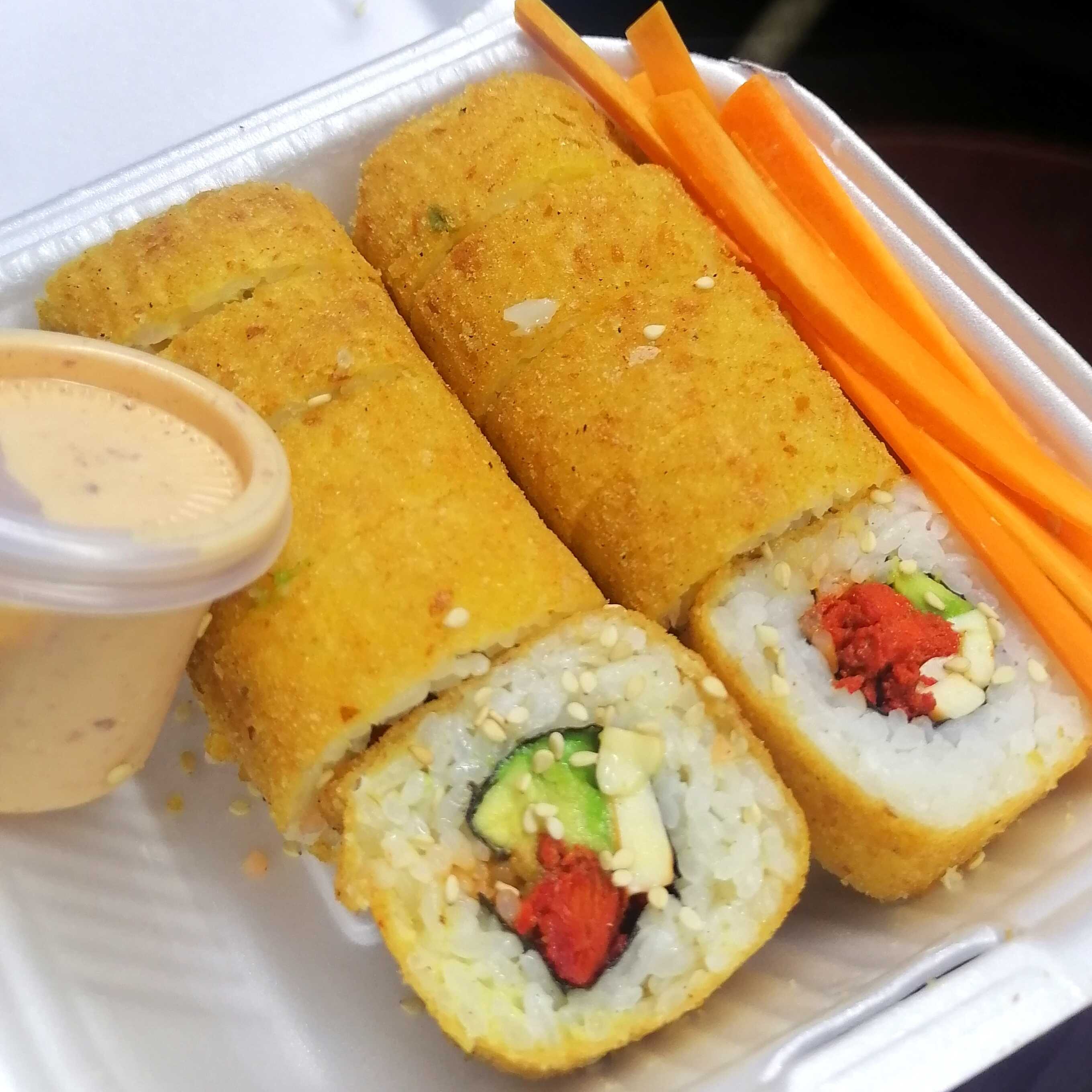 arroz Frito, camaron capeado Aguacate y queso filadelfia