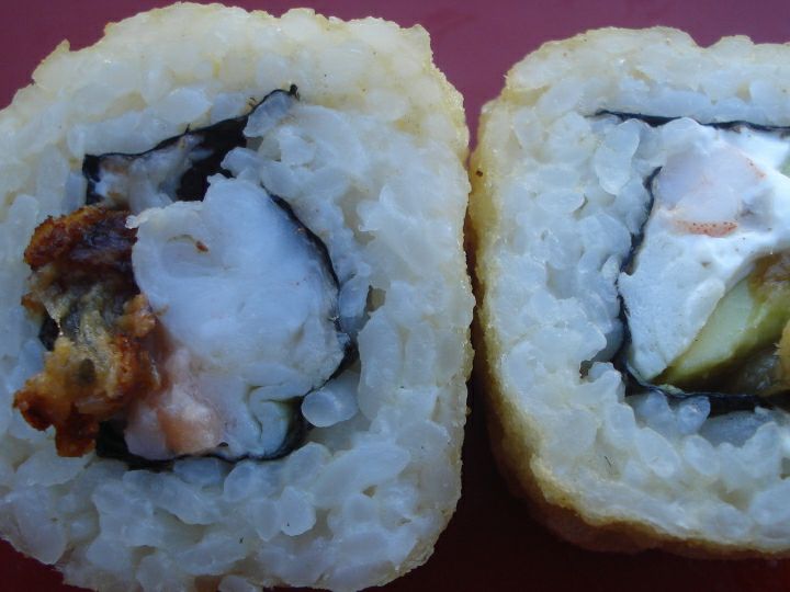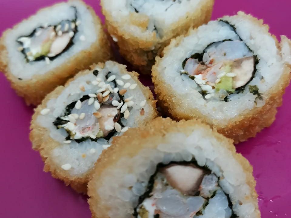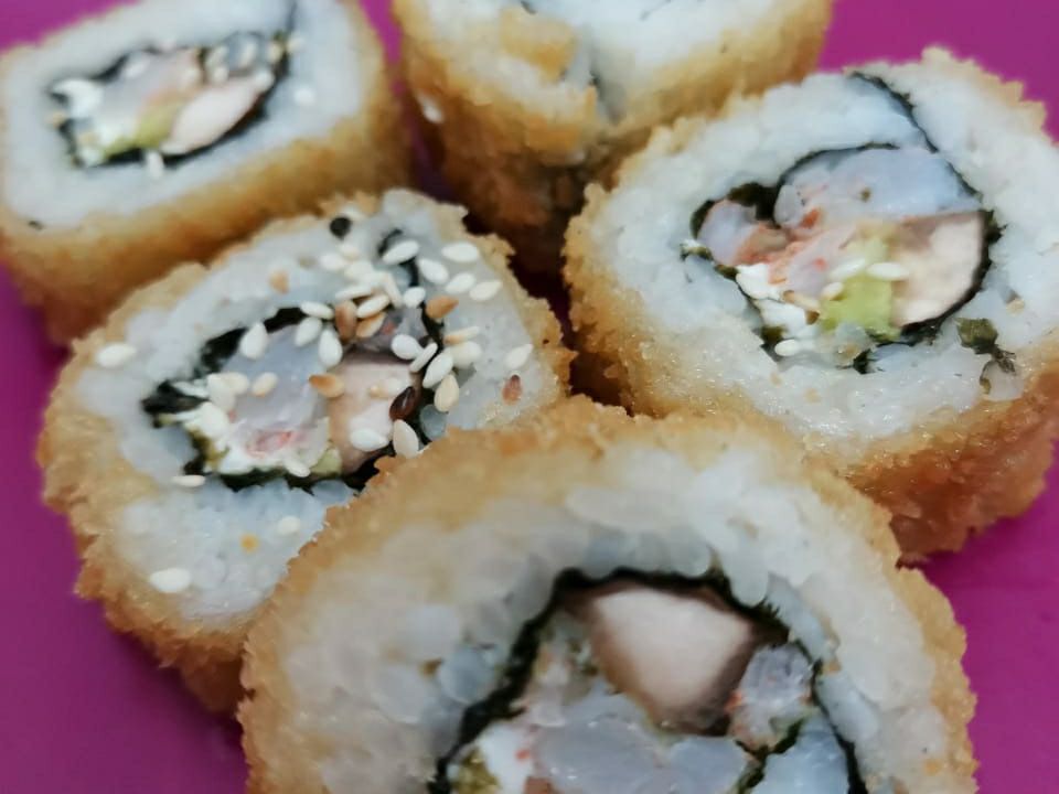 Tempura o panki capeado o empanizado, alga o arroz a fuera y queso crema a tu elección.
